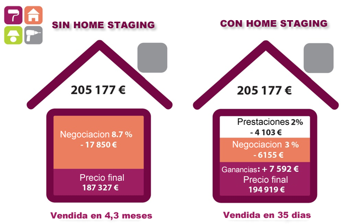Consiste en preparar y acondicionar una vivienda para hacerla más atractiva para posibles compradores o inquilinos. Asi la vendera a mejor precio y mas rapido o la alquilara mejor.